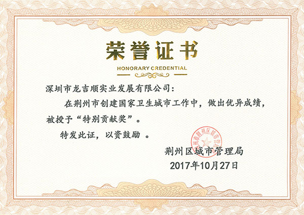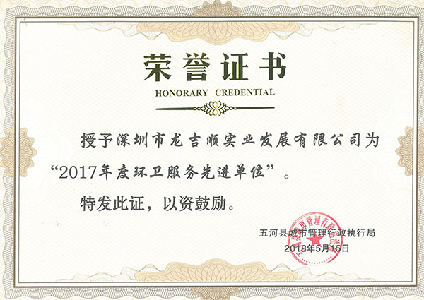 熱烈祝賀深圳市龍吉順實業發展有限公司晉中分公司白根牛、王毛毛榮獲晉中市市容環境衛生管理局頒發的“最美環衛人...